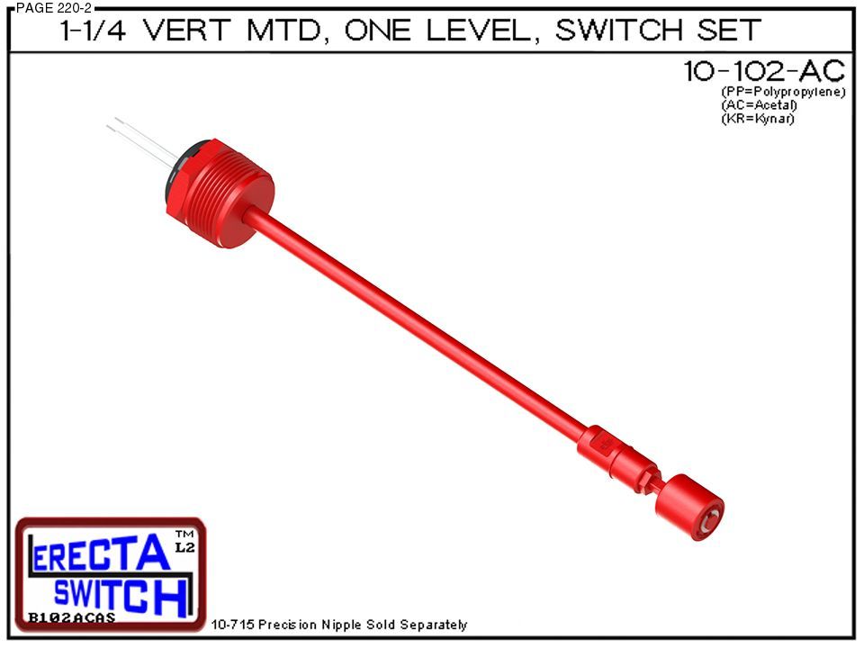 10-102-AC 1-1/4″ NPT Wiring Receptacle Vertical Mounted One Level Extended Stem Level Switch Set (Acetal)