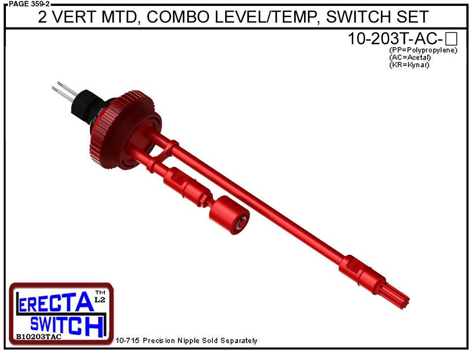 10-203T-AC 2″ NPT Vertical Mounted Combination Level Switch / Temperature Switch Set (Acetal)