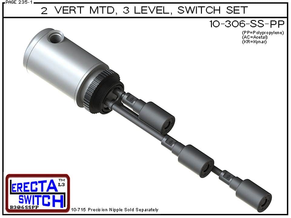 10-306-SS-PP 2″ NPT Mounted Relay Housing Shielded 3 Level Drum Float Switch Set (Polypropylene) – OEM 10 Pack