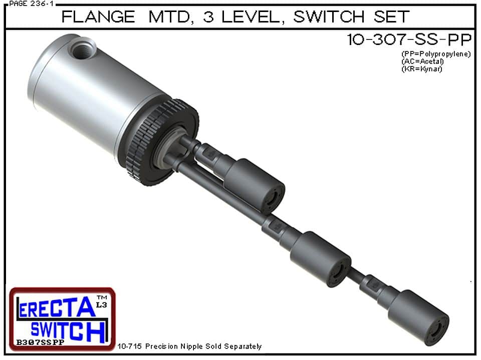 10-307-SS-PP Flange Mounted Relay Housing Shielded 3 Level Switch Set (Polypropylene)